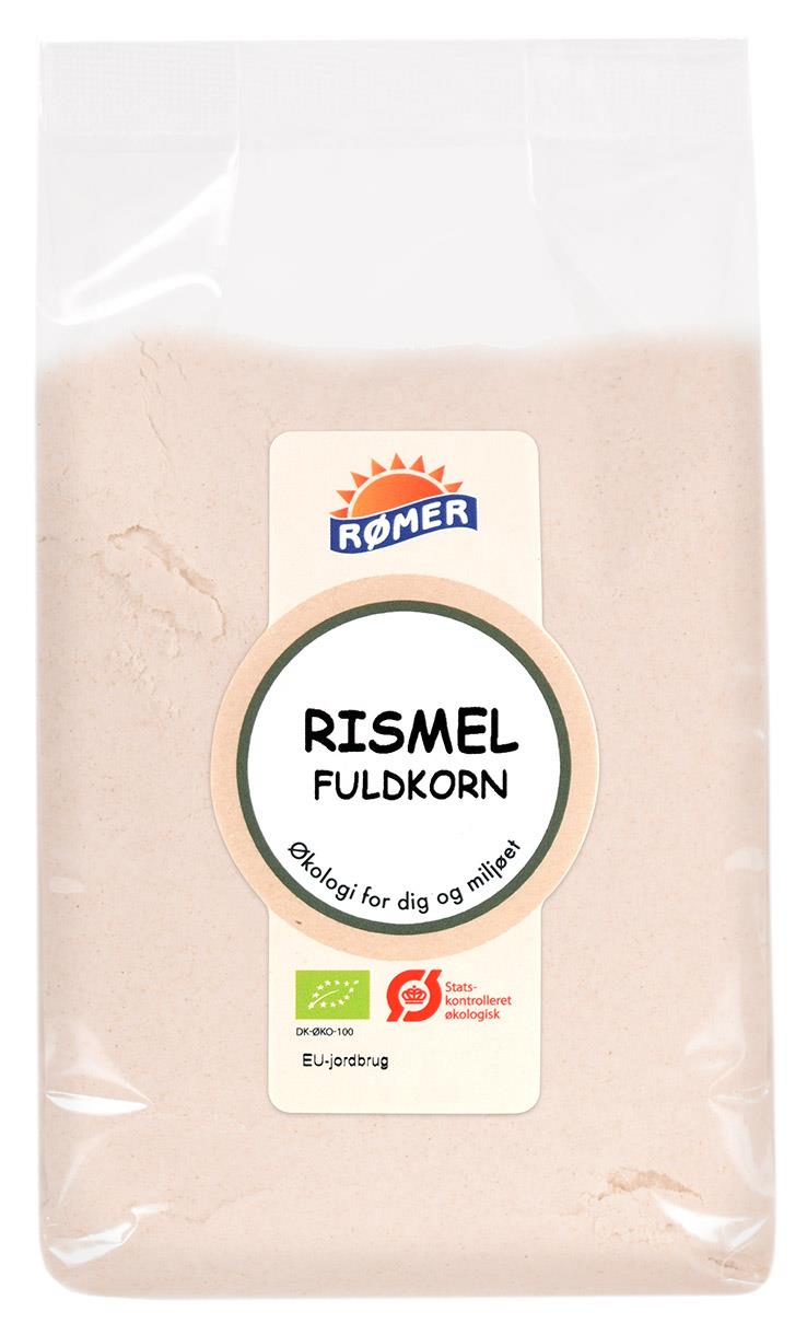 Rømer Fuldkornsrismel er et økologisk rismel af hele riskornet. Du får dermed et fuldkornsprodukt, hvor både kim og skal er bevaret, hvilket giver mel med risens milde smag og fuldkornets struktur i dit bagværk og din madlavning.