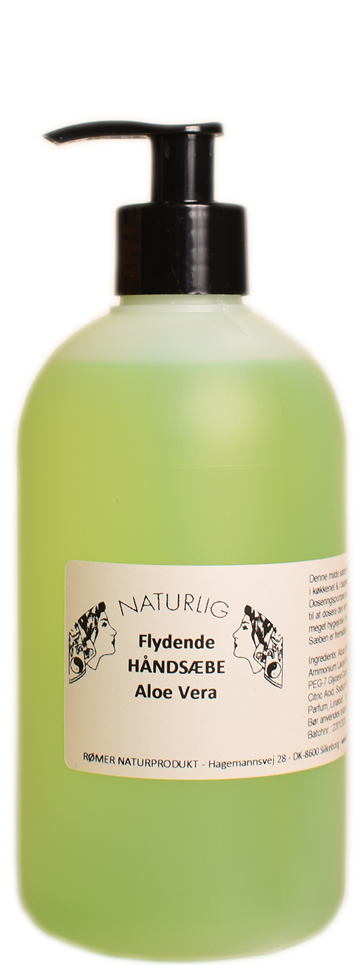 Flydende Håndsæbe med Aloe Vera fra Rømer Naturprodukt er en mild sæbe der er velegnet som håndsæbe i køkkenet og på badeværelset. Sæben er fremstillet af 100 % vegetabilske råvarer.