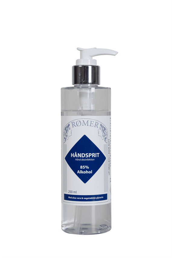Rømers Håndsprit bruges til desinfektion af hænderne for at opretholde høj håndhygiejne. Rømers Håndsprit er tilsat Aloe Vera og Glycerin, hvilket giver en blødgørende effekt.